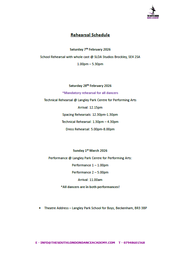 The pupils of The South London Dance Academy will be performing their dance spectacular at Langley Park Centre for the Performing Arts on Sunday 25th February 2024